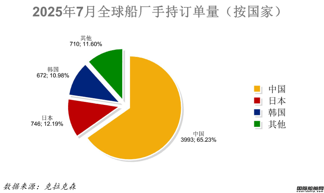 全球手持订单6,121艘,中国船厂3993艘占全球市场份额65.23%