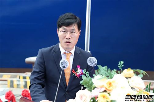 周旭辉在仪式上致辞道:“眼前这艘钢铁巨轮,既是H-LINE公司8600车汽车运输船系列船的收官之作,更是广船国际与H-LINE深度合作的圆满见证。H-LINE公司将七艘重要的汽车运输船建造任务全权托付,GLOVIS作为租家始终给予坚定信任与鼎力支持,全体广船人夜以继日的辛勤付出与不懈拼搏,协力创下了该系列船一项项亮眼的交付纪录。收官不是终点,而是新的起点。广船国际将以更加专业的技术实力、更加高效的履约能力提供一流服务,期待与H-LINE、GLOVIS携手探索更广阔的合作领域,共绘互利共赢的新蓝图。”