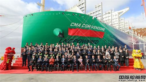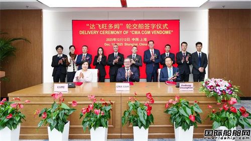 12月12日,沪东中华造船为法国达飞海运集团建造的全球最大24000TEU级LNG双燃料集装箱船“达飞旺多姆(CMA CGM VENDOME)”号(H1906A)提前8个半月命名交付,标志公司全面完成2025年生产经营任务。同时这是沪东中华交付的第100艘大型集装箱船,是公司荣光镌刻的新里程碑,彰显中国在全球造船领域的主导地位。