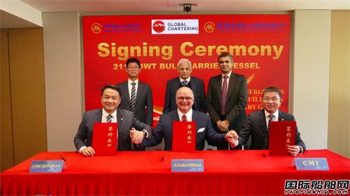 Arcelor Mittal公司副总裁Viral C Vora,Global Chartering Limited公司执行总裁Yannis Haramis、总经理Nitin Mehrotra,招商船舶工业董事长吴四川、副总经理兼青岛船厂总经理郑和辉,青岛船厂常务副总经理彭晟出席签署仪式。与Arcelor Mittal的成功签约,标志着青岛船厂在建造高端、大型散货船领域的技术实力与品牌声誉,再次获得国际知名船东的认可。