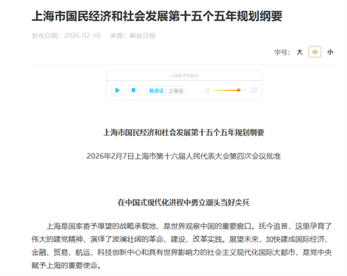 规划纲要明确,上海将在长三角一体化发展中更好发挥龙头带动作用,共建上海(长三角)国际科技创新中心,落实长三角协同共建上海(长三角)国际科技创新中心方案,打造世界级科技创新策源地;加强优势资源整合,协同共建长三角国家技术创新中心以及科技资源共享平台、概念验证平台、中试平台。共育长三角世界级产业集群,聚焦智能网联汽车、大飞机、船舶与海洋工程装备等领域,深化产业链供应链协同合作,共同提升长三角产业集群在全球产业链中的竞争优势。