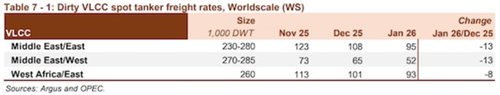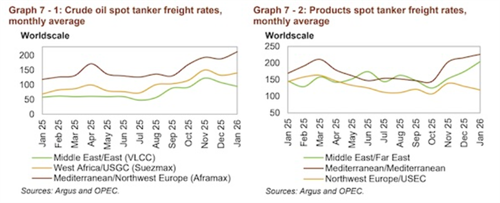 欧佩克在其最新月度报告中表示,油轮市场在今年开局表现积极。在地缘政治不确定性、天气干扰、计划外停产以及稳定的装货活动的支撑下,黑油轮即期运费在1月份迎来强劲开局。