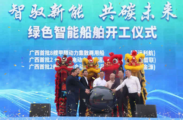 仪式现场还举行了醒狮表演及政府主管部门、企业、合作代表致辞。此次签约的19艘船舶中,8艘甲醇动力集散船、9艘纯电动力平陆运河散货船、2艘LNG混合动力油化品船,均为广西首批同类新能源船舶,标志着桂平船舶制造迈入绿色智能新阶段。