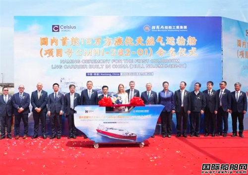 4月8日,我国自主设计建造的国内首艘18万方LNG运输船“CELSIUS GEORGETOWN”号命名仪式在招商船舶海门基地举行。