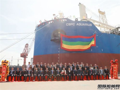 仪式上,命名人刘悦女士为新船命名剪彩,祝愿“CSPC AQUARIUS”轮乘风破浪、开辟远航新篇章。